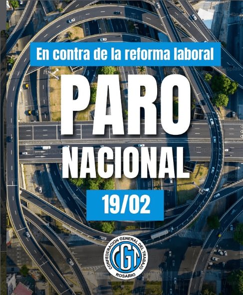 Adherimos al paro convocado por la C.T.A.-T junto a las otras Centrales de Trabajadores para el 19 F, día en que se prevé el tratamiento del Proyecto de Reforma Laboral en la Cámara de Diputados de la Nación, porque rechazamos esta ley de perfil esclavista que representa un enorme retroceso en materia de derechos para el pueblo trabajador.