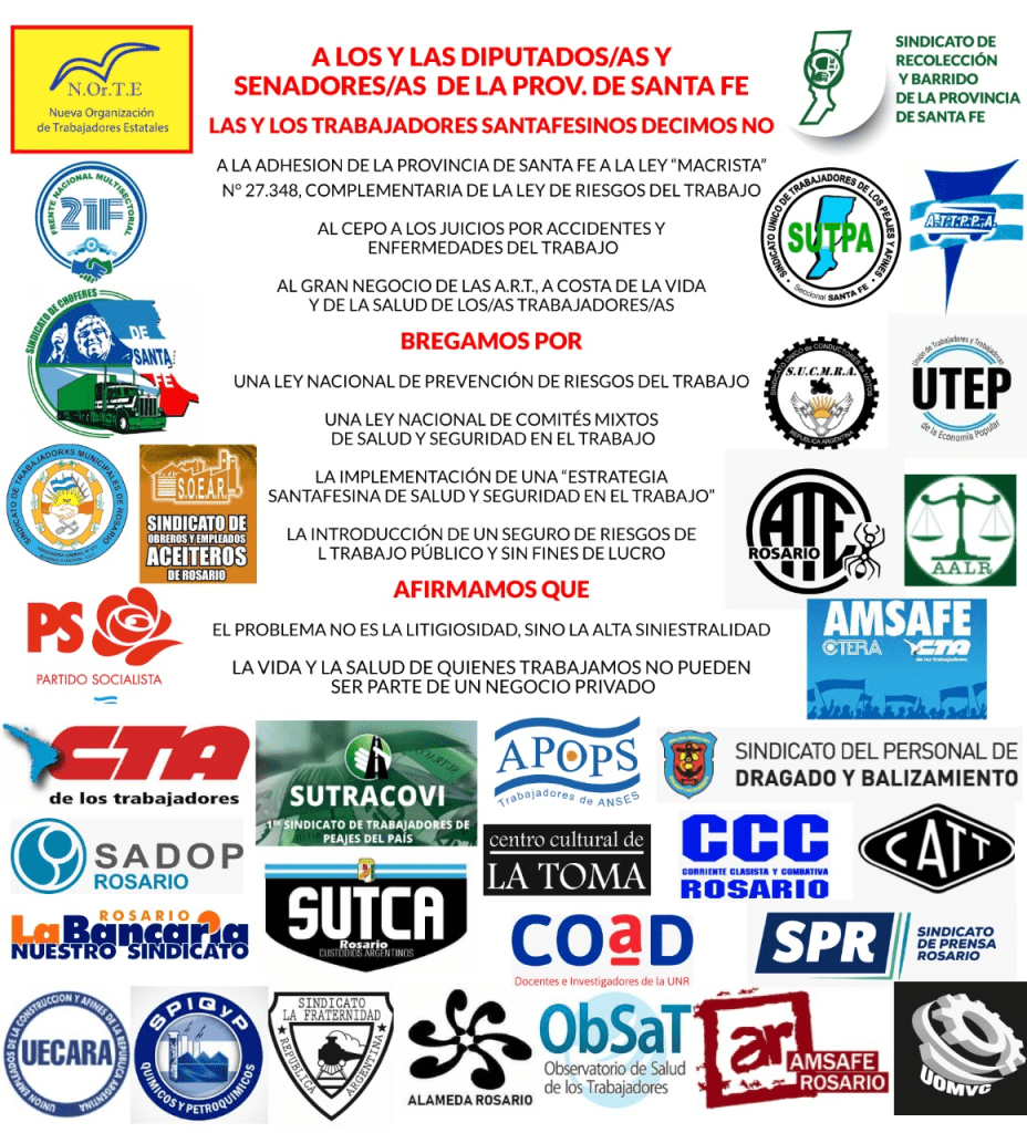 FUERTE RECHAZO DE LOS GREMIOS A LA APROBACION DE LA LEY PROVINCIAL DE ADHESION A LA LEY NACIONAL DE LAS ASEGURADORAS DE RIESGOS DEL TRABAJO