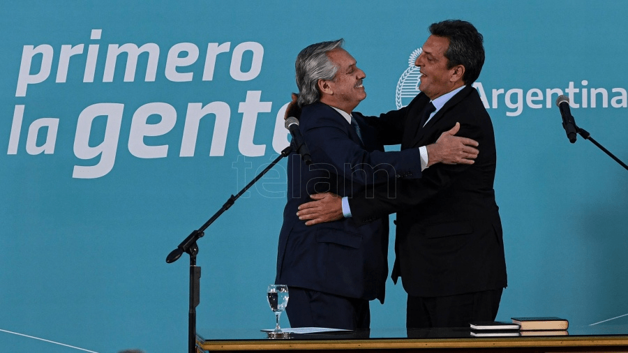 “Estamos iniciando una nueva etapa de gobierno que todos juntos transitaremos exitosamente; Para eso los llamo, para eso llamé a Sergio, cuya capacidad y coraje conozco, y estoy seguro que lo hará muy bien y, de antemano gracias”, subrayó el Presidente y luego estrechó la mano de Massa, momentos antes de el acto de posesión. Tras la juramentación, Fernández y Massa se abrazaron y el presidente volvió a utilizar la palabra, para expresar su “más profundo agradecimiento” a Batakis, Daniel Scioli y Julián Domínguez (presentes en el acto), quienes dejaron sus cargos en las anteriores carteras de Economía, Productiva. Fomento y Agricultura, que desde hoy se incorporan al nuevo ministerio ampliado que acaba de asumir Massa.