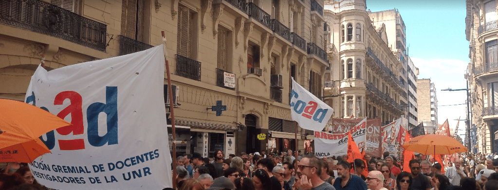 Un conjunto de Sindicatos y Organizaciones Sociales Movilizamos en Rosario contra el Megadecreto del Presidente Milei. D.N.U. que, además de Ilegal e Inconstitucional, implica una Reforma profunda para recortar Derechos Laborales, Entregar el Patrimonio Nacional y Degradar los Sistemas Públicos de Salud y de Educación, entre otras medidas muy negativas contra el pueblo.