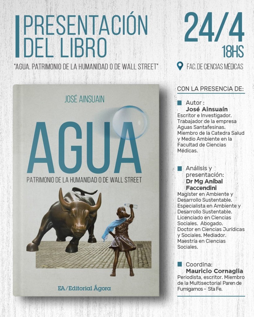 Desde el Área de Ambiente de COAD lxs invitamos a la presentación del libro «AGUA. Patrimonio de la humanidad o de Wall Street», que se realizará el miércoles 24 de abril a las 18hs. en la Facultad de Ciencias Médicas.