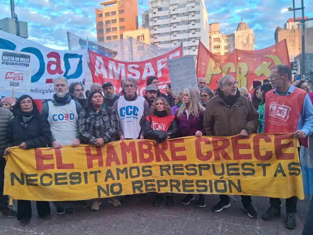 ACTO OFICIAL: SOLO ASFALTO, EL VACIO DEL MONUMENTO Y ALGUNOS ASISTENTES. ESO SI: ¡MUCHOS EFECTIVOS DE SEGURIDAD!LOS REPRESENTANTES DE LA MULTISECTORIAL DE ROSARIO (40 ORGANIZACIONES SOCIALES, SINDICALES, ESTUDIANTES Y POLITICAS) EN MARCHA HACIA EL MONUMENTO NACIONAL A LA BANDERA QUE ENCONTRARON VALLADO EN LA INTERSECCION DE CALLE CORDOBA Y LAPRIDA, IMPIDIENDO DE ESTA MANERA SU LLEGADA AL PARQUE NACIONAL A LA BANDERA DONDE SE ESTABA POR DESARROLLAR EL ACTO OFICIAL.FOTOGRAFIA: elciudadanoweb.com