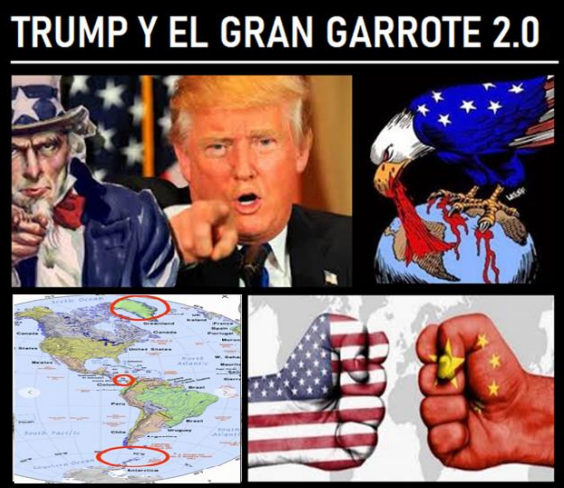 En lo atinente a su política exterior que es lo que en realidad nos debería preocupar a aquellos que somos parte de países coloniales que sufrieron la acción deletérea del imperialismo yanqui da toda la impresión que Trump parece encarnar una versión más contemporánea y peligrosa: la de un Teddy Roosevelt recargado, portador de un “Gran Garrote”.