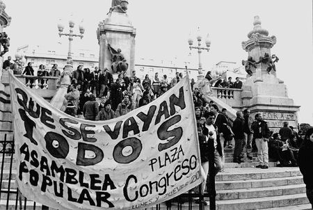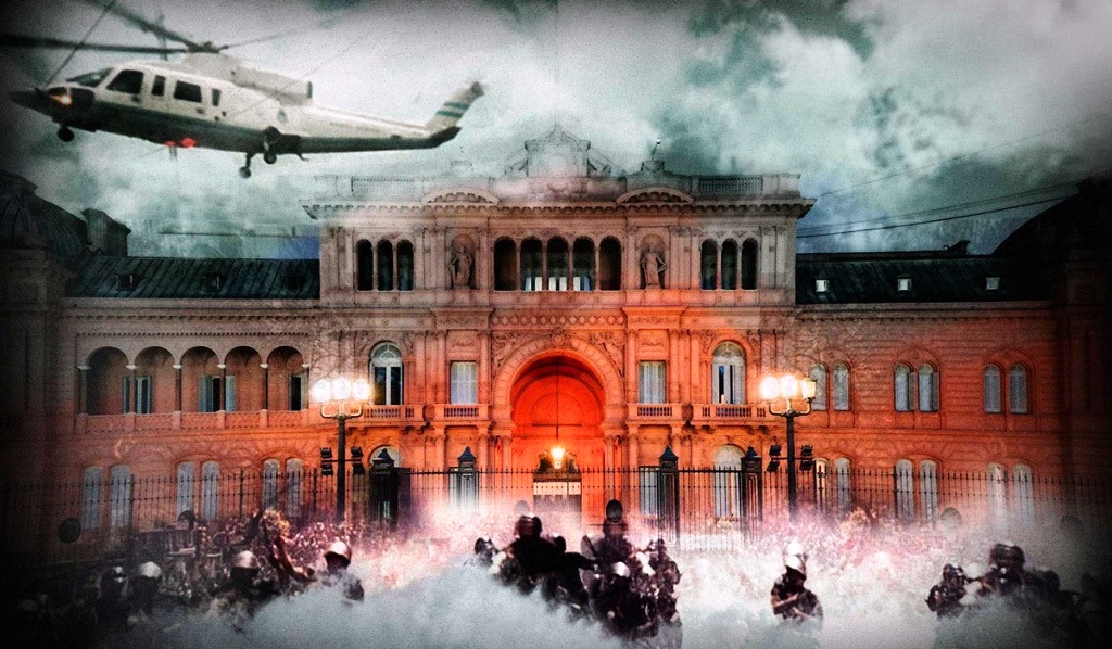 Las protestas comenzaron el 19 de Diciembre de 2001, en medio de saqueos y ruidos de cacerolas, donde unidas la clase baja y media, pedían por la Renuncia de Fernando De la Rúa. Las mismas, se extendieron al día siguiente, siendo la respuesta del Presidente, declarar el Estado de Sitio y Reprimir Brutalmente en Plaza de Mayo. Esto dejaría un saldo de 39 muertos como huella imborrable en nuestra Democracia. Luego de los enfrentamientos, Fernando de la Rúa huye en helicóptero.