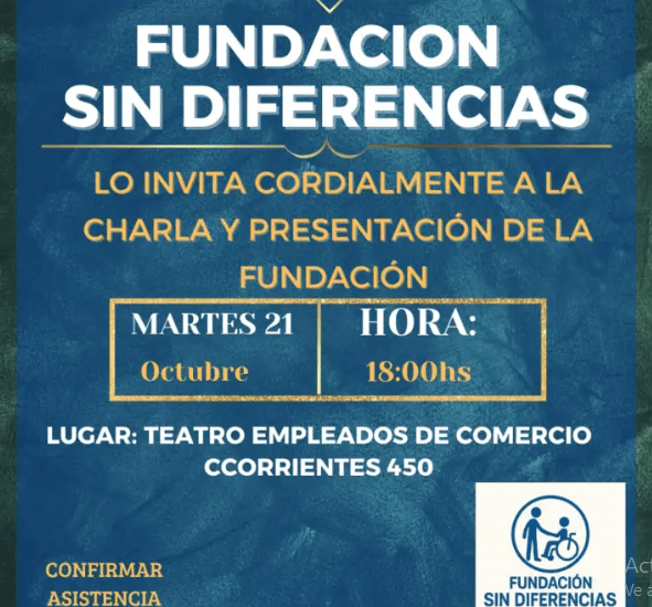 Este Martes 21 de Octubre, a partir de las 18:00 Horas, se presenta en el Teatro Empleados de Comercio, la FUNDACIÓN SIN DIFERENCIAS.