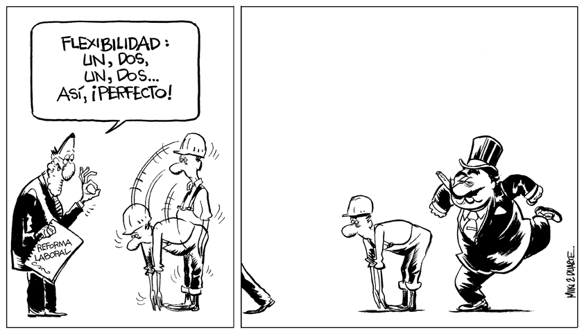 Denunciaron lo que llamaron el «nuevo espíritu de la época: “enriquecerse y olvidarse de todo menos de uno mismo», una visión rebajada degradante de la vida humana que debe ser inculcada en pensamiento de la gente sin escatimar esfuerzos, lo que de hecho ha ocurrido durante siglos. Durante el siglo XX, la literatura sobre la industria de la comunicación pública nos proporciona una rica e instructiva retahíla de instrucciones sobre cómo implementar el «nuevo espíritu de la época» mediante la creación de necesidades, o bien a través de «regir la opinión pública del mismo modo que un ejército rige los cuerpos de sus soldados», e induciendo a una «filosofía de la futilidad» y a una carencia de objetivos en la vida, concentrando la atención humana en «las cosas más superficiales, las referidas en gran parte al consumo de moda». Si esto es posible, entonces la gente aceptará su insignificante y subordinada vida, apropiada para ellos, y así se dejarán de ideas subversivas, de tomar el control de sus vidas. Es éste un proyecto de ingeniería social de envergadura. Ha sido así durante siglos, pero se ha intensificado y ha tomado mayor calibre desde el siglo pasado. Hay muchas maneras de implementarlo. Algunas son las que ya he indicado y sería redundante ilustrar. Otras incluyen minar la seguridad, y aquí podemos encontrar varias maneras. Una manera de minar la seguridad es amenazar con la pérdida del empleo, una de las mayores consecuencias, y que racionalmente se debe asumir, de los objetivos de los mal llamados acuerdos comerciales (subrayo «mal llamados» porque no son acuerdos de librecambio, ya que contienen fuertes elementos anti-mercado, de variada naturaleza, y stríctu sensu no son acuerdos, ya que a la gente le preocupan, y en gran medida se oponen a ellos). Una consecuencia de estos proyectos es facilitar la amenaza (que no tiene porqué ser real, a veces con la amenaza basta) de la pérdida del empleo, lo que constituye una buena manera de disciplinar minando la seguridad. Otra estratagema es la promoción de lo que se llama «LA FLEXIBILIDAD DEL MERCADO DE TRABAJO». Déjenme citar al Banco Mundial, que expone la cuestión sin tapujos. Dice: «el Incremento de la Flexibilidad en el Mercado de Trabajo, a pesar de su mala fama, y de que se ha adoptado como un eufemismo de disminución de salarios y de despido de trabajadores» (que es exactamente lo que es) «ES ESENCIAL EN TODAS LAS REGIONES DEL MUNDO (…) Las Reformas más importantes implican el levantamiento de restricciones a la Movilidad Laboral y la Flexibilidad salarial, así como desvincular los servicios sociales de los Contratos Laborales». Esto significa REBAJAR LOS BENEFICIOS Y LOS DERECHOS QUE SE HAN CONQUISTADO POR VARIAS GENERACIONES Y TRAS UNA DURA LUCHA. Cuando se habla de rebajar las restricciones a la flexibilidad salarial, quieren decir FLEXIBILIDAD HACIA ABAJO, NO HACIA ARRIBA. Cuando se habla de movilidad laboral no se hace referencia al Derecho de la Gente de mudarse allá donde quiera, tal como ha sido siempre reclamado desde la Teoría del Libre Mercado, desde Adam Smith, sino más bien se hace referencia al DERECHO DE DESPEDIR TRABAJADORES CUANDO CONVENGA.