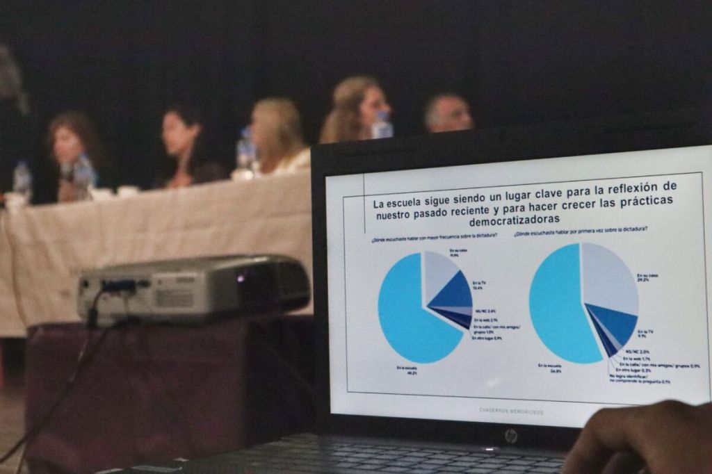 En esa jornada, desde el Programa Educación y Memoria de Santa Fe compartieron los «Cuadernos Memoriosos» que reúnen Recursos Didácticos y Pedagógicos para hablar de la Dictadura Cívico-Militar en las aulas. Se editaron en función de los 40 años de Democracia ininterrumpida. Los detalles de los contenidos y su producción lo ofrecieron las coordinadoras de este programa Susana Nadalich e Ingrid Schegtel.