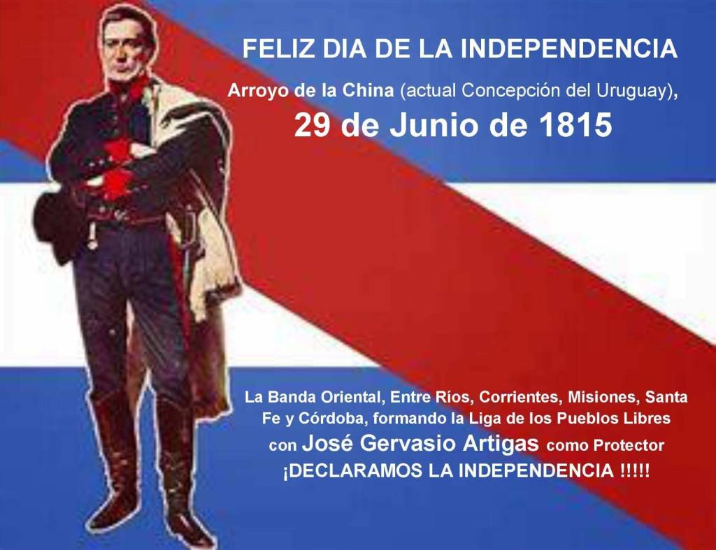 El 29 de Junio de 1815, convocados por José Gervasio Artigas, Representantes de la Banda Oriental, Córdoba, Corrientes, Entre Ríos, Misiones y Santa Fe se reunieron en la Villa del Arroyo de la China (hoy Concepción del Uruguay) para dar vida al CONGRESO DE ORIENTE O DE LOS PUEBLOS LIBRES, QUE DECLARO POR VEZ PRIMERA -UNA AÑO ANTES QUE EL DE TUCUMAN- NUESTRA INDEPENDENCIA DE ESPAÑA Y DE “TODO PODER EXTRANJERO”.