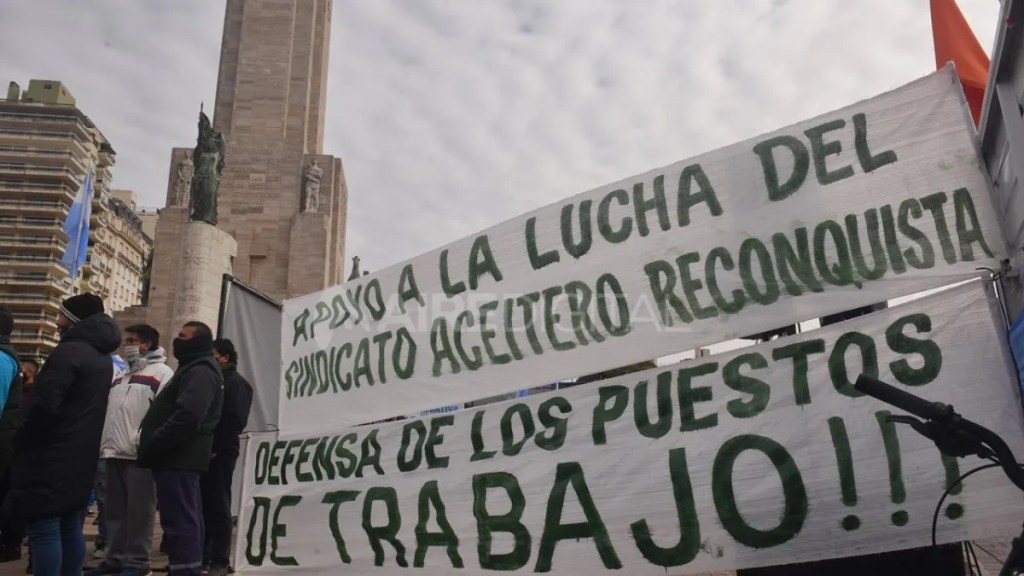 MOVILIZACION Y ACTO DE TRABAJADORES ACEITEROS Y OTROS GREMIOS, EN EL MONUMENTO NACIONAL A LA BANDERA EN APOYO A UNA INTERVENCION DEL ESTADO EN LA EMPRESA VICENTIN -JULIO DE 2020- (FOTOGRAFIA: SEBASTIAN GRANATA/Télam)