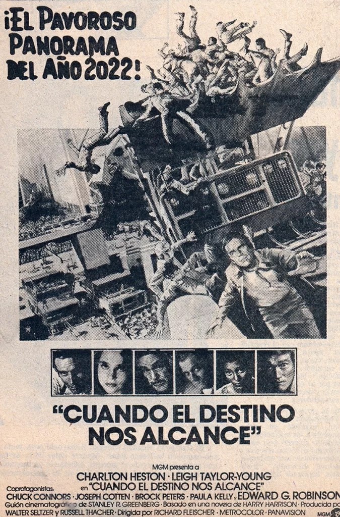 Charton Heston es un policía que descubre una trama de comida enlatada. Una multinacional usa cadáveres como alimentos para vender a la población. El filme de Richard Fleischer es pos apocalíptico. Un filme de ciencia ficción que en 1973 pasó desapercibido. El mundo en los 70 era un mundo de abundancia. ¿Quién podría pensar en los 70 que la pobreza y el hambre sería la constante del futuro? La ciencia ficción se adelanta a lo que vendrá. Es una caricia que pega fuerte y produce terror y fantasía y placer. El espectador se dice: «es ciencia ficción, nunca va a ocurrir». Katherin Bigelow, esa directora que nos deleita con su cine tan trabajado, en 1995 filma Días Extraños. Juliette Lewis tiene 23 años (en el filme hace de 19). Ralph Finnes tiene 34 años. El filme es alucinante. El mejor filme de la directora. La película trata sobre un traficante de placeres; un hombre (Ralph Finnes) trafica un aparatito donde te lo ponés en la cabeza y podés así disfrutar de los placeres que sienten otras personas en el acto sexual. Se roban imágenes de las mentes de las personas, y se graban y trafican. Así Ralph puede seguir gozando del cuerpo de Juliette al ponerse el aparatito y recostarse en la cama a soñar. La chica fue su amante y ahora lo desprecia. Pero esas imágenes de sexo siguen presentes en ese aparatito. Es el último día de 1999 y el 2000 trae incertidumbre. Es un policial minimalista.