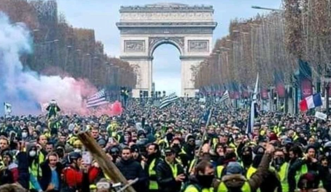 PROTESTA EN EL ARCO DE TRIUNFO EN LA CIUDAD DE PARIS -REPUBLICA FRANCESA- POR LA PERDIDA DEL PODER ADQUISITIVO Y LA SUBA DE COMBUSTIBLES (DICIEMBRE DE 2018)