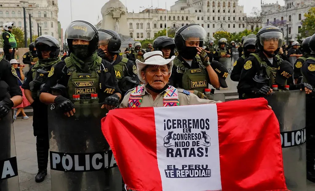 Dina Boluarte dio inmediatamente señales de concertación con la mayoría del desprestigiado parlamento – sólo alrededor de 10% de apoyo popular, según encuestas – y se generó un amplio movimiento social de repudio al golpe parlamentario que se extendió por todo el país, especialmente por los departamentos (equivalentes a provincias) y zonas rurales, llegando también a Lima. Cabe recordar una fractura ideológica histórica entre la capital – más conservadora en las últimas décadas – y el interior, de raigambre más popular. Esta se expresó en la elección de Castillo, y en las manifestaciones posteriores para ambos bandos, pero tras el golpe parlamentario de diciembre, y tras un año y medio de muy evidente sabotaje parlamentario a cualquier intento de solución de los problemas de los peruanos por parte del gobierno, los únicos movilizados en favor del gobierno de Boluarte o del Congreso fueron las fuerzas represivas, que actuaron brutalmente, produciendo hasta ahora alrededor de medio centenar de muertos e innumerables heridos, sin lograr menguar el volumen de la protesta popular.