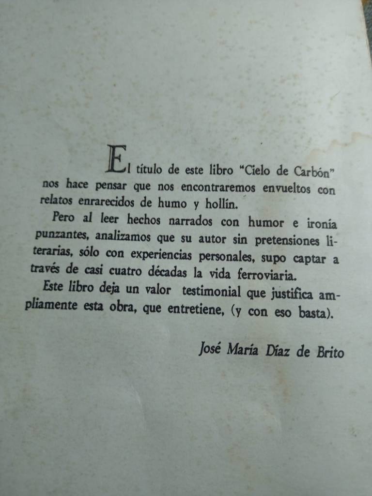 El libro es espectacular, tiene ese aroma a libro raro y no comercial. Hay muchos libros sobre ferrocarriles, libros prolijos y con datos estadísticos; pero no hay ningún otro libro que narre la vida de los obreros del tren como lo narra un obrero que vivió en carne propia esa cosa tan linda que fue trabajar en Pérez.