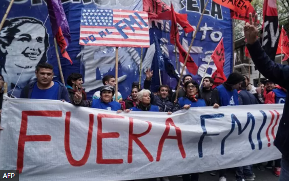 El F.M.I. se coloca en una situación de fuerza frente al país debilitado y frágil exigiéndole lo que llama «reformas estructurales», que no son más que: desprotección de los trabajadores, apertura del sistema jubilatorio al capital financiero privado, reducción de la presión tributaria a las empresas y reducción del gasto público.-