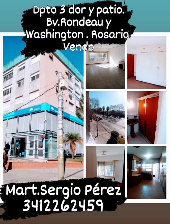 Washington 721. Amplio departamento de 3 dormitorios con placares. Luminoso living- comedor. Cocina comedor y lavadero independiente. Baño con mampara. Patio de uso exclusivo. Sector de descanso íntimo. Orientación norte y este. Ventilación cruzada. Vistas sobre Bv Rondeau y calle Washington de los dormitorios y living comedor.