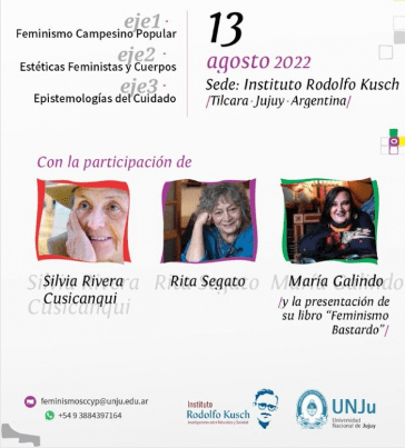 Desde el Instituto Rodolfo Kusch de la Universidad Nacional de Jujuy (U.N.Ju.), en el marco de la Cátedra y Diplomatura en Feminismos Comunitarios, Campesinos y Populares del Abya Yala, se llevó a cabo el 13 de agosto, en Tilcara, Provincia de Jujuy, el Primer Encuentro Internacional Feminismos Comunitarios, Campesinos y Populares en Abya Yala.