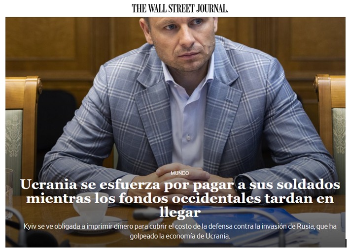 En el mismo sentido, The Wall Street Journal “osó” develar que los impuestos que Ucrania recauda constituyen sólo el 40% del presupuesto nacional y que, de ese monto, un 60 % se destina específicamente a gastos militares, mientras la economía del país sufre un déficit de 5.000 millones de dólares mensuales. Y aún más, la publicación reveló que el Banco Central de Ucrania está imprimiendo dinero para que el Gobierno de Zelenski pueda pagar a los soldados, pese a que dicha medida debilita la moneda local y agrava la inflación.