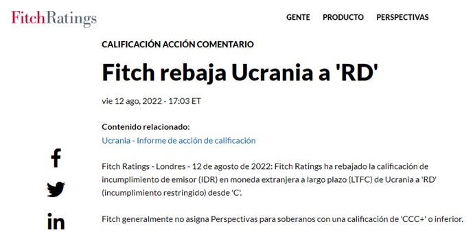 Es lo que también acontece, por ejemplo, con la quiebra inminente de Ucrania, secreto escondido a siete llaves por los medios masivos, a pesar de que las agencias calificadoras de riesgo S&P (Standard & Poor’s) y Fitch dictaminaron que el país cayó en ‘default’ al haber pospuesto (“reperfilado” diría Macri) los pagos de su deuda externa por dos años.
