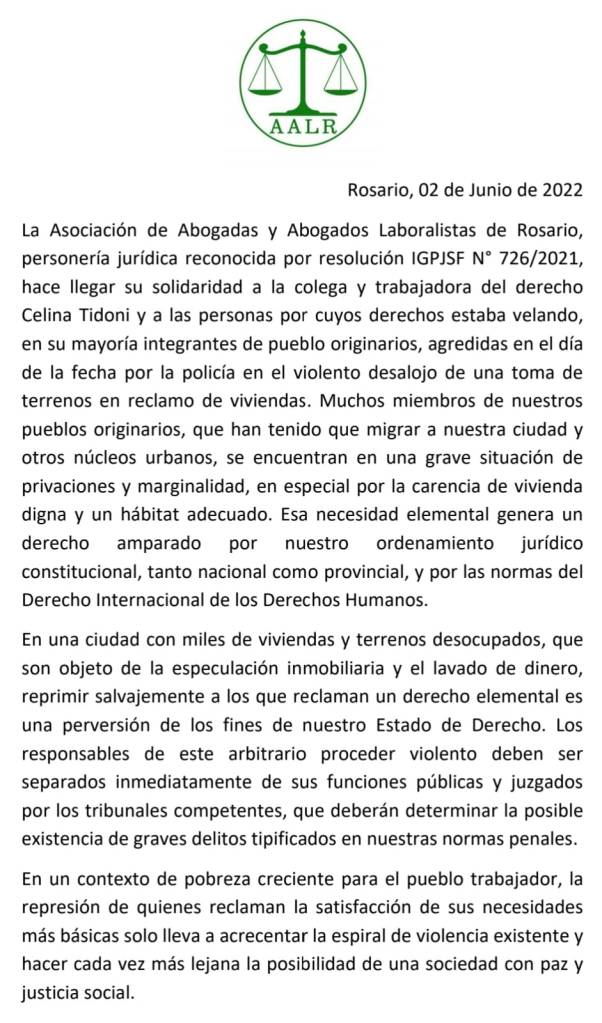 REPUDIO AL ACCIONAR POLICIAL