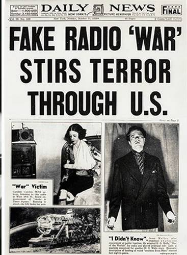 LA GUERRA DE RADIO FALSA PROTAGONIZA EL TERROR A TRAVES DE LOS EE.UU. TITULA LA TAPA DEL DIARIO DAILY NEWS EN EL MES DE OCTUBRE DEL AÑO 1938