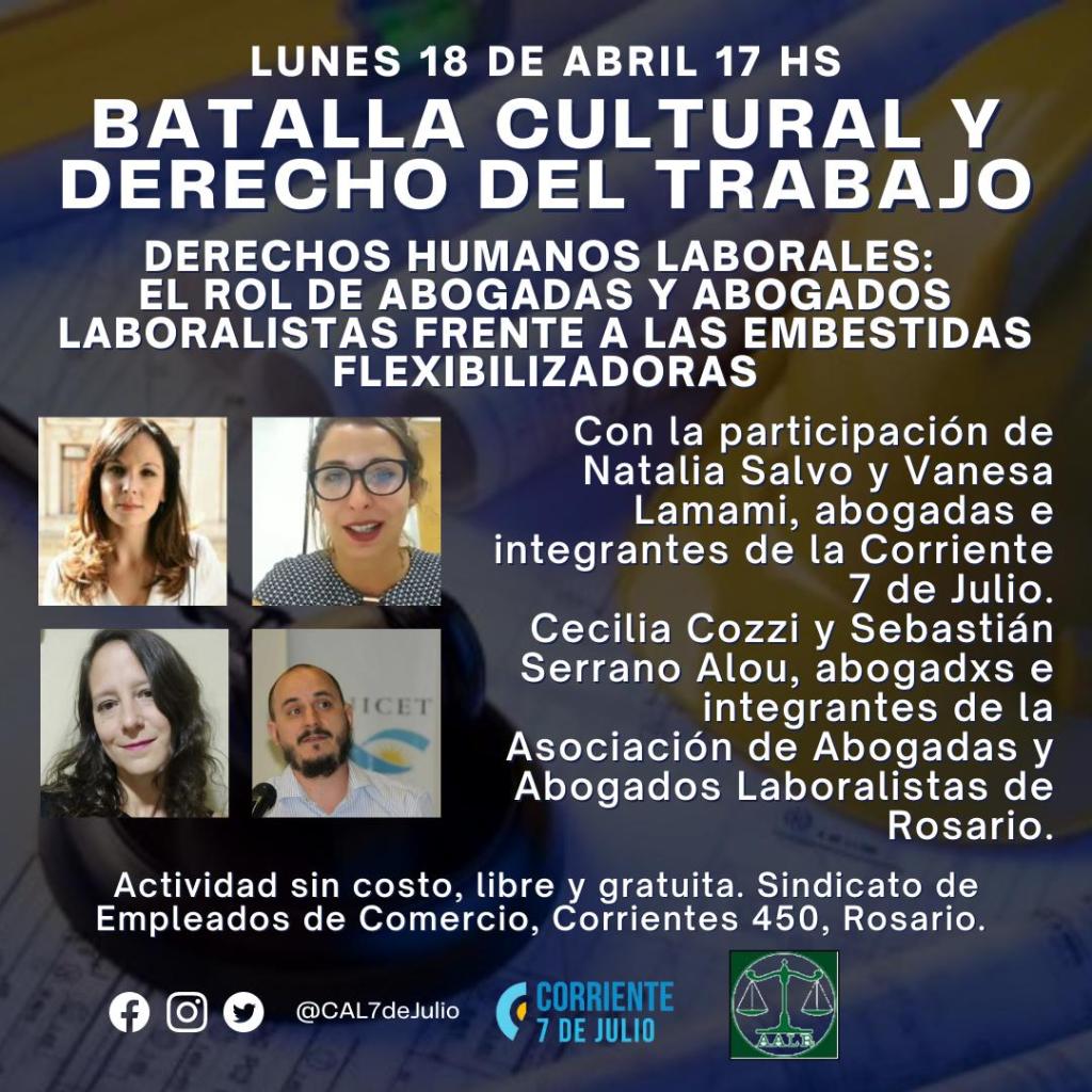 «BATALLA CULTURAL Y DERECHO DEL TRABAJO» DERECHOS HUMANOS LABORALES: EL ROL DE ABOGADAS Y ABOGADOS LABORALISTAS FRENTE A LAS EMBESTIDAS FLEXIBILIZADORAS», REALIZADA EN EL DIA DE AYER EN EL SINDICATO DE EMPLEADOS DE COMERCIO DE LA CIUDAD DE ROSARIO.