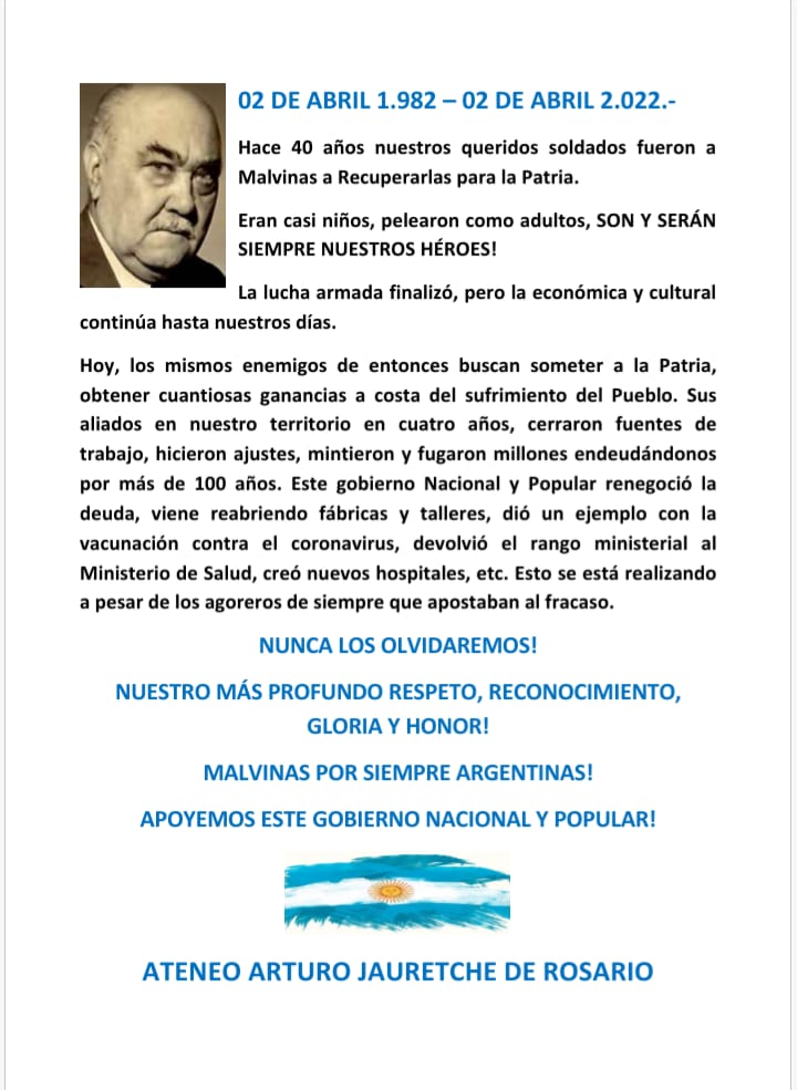 Repudiamos el colonialismo y reivindicamos la soberanía de la Argentina sobre las Islas Malvinas, Georgias y Sandwich del Sur que nunca debemos olvidar ni dejar de reclamar.
