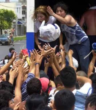 Dos años de ajustes sin ninguna red de contención. El peronismo tenía una prohibición: compartir la función de gobierno. Cavallo le dijo a un senador que quería seguir siendo ministro, pero con un presidente del P.J. Los editoriales afirmaban: «La clase política frente al desafío de ponerse los pantalones largos” y, para muchos, la única solución era la renuncia del presidente. El mundo hizo foco en los disturbios. El gobierno buscaba impedir el drenaje de fondos del sistema financiero. El Banco Central pondría límites a la apertura de nuevas cuentas. La autoridad monetaria solicitó a los bancos un informe para poder identificar la repetición de titulares. Los bancos ampliarán el horario de atención. Pedían apoyo internacional para que venga un auxilio financiero. El tesoro de EE.UU. solicitaba al F.M.I. que ayude. Los saqueos movilizaron a Paul O’neill, pero fuentes del Departamento de Estado avalan la renuncia de Cavallo. El mercado salió inmune de la ola de saqueos que sacudía al país. Se declaró en cesación de pagos la siderúrgica Acindar. La empresa de Villa Constitución comunicó a la bolsa que no podrá afrontar vencimientos de capital e intereses. Una jueza laboral ordenó el arresto de un banquero que no liberó depósitos. Postergaron las cifras del déficit. El Banco Mundial confirmó que los créditos fueron al freezer. Una calificadora pronosticó un default para el mes de enero.