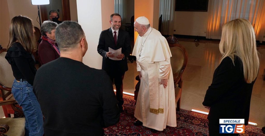 FRANCISCO DIALOGA EN EL PROGRAMA «MEDIASET» DE LA TELEVISION ITALIANA CON «CUATRO INVISIBLES» DE LA SOCIEDAD: MARIA, UNA SIN TECHO DESDE HACE AÑOS. GIOVANNA, UNA MADRE QUE HA PERDIDO SU TRABAJO Y QUE HA VIVIDO LA VIOLENCIA FAMILIAR. PIERDONATO UN EX PRESIDIARIO QUE HA CUMPLIDO 25 AÑOS DE CARCEL. MARISTELlA, UNA SCOUT A LA QUE LA PANDEMIA LA TRANSFORMO EN UNA JOVEN DESANIMADA, QUITANDOLE LAS GANAS DE ALEGRARSE.