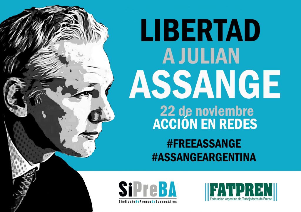 CAMPAÑA ARGENTINA DE SOLIDARIDAD POR LA LIBERACION DE JULIAN ASSANGE. LA C.T.A. AUTONOMA Y A.T.E. NACIONAL ADHIEREN A ESTA ACCION LANZADA POR FATPREN Y SIPreBA PARA VISIBILIZAR LA CAUSA, QUE SE LLEVARA A CABO EL LUNES 22 DE NOVIEMBRE