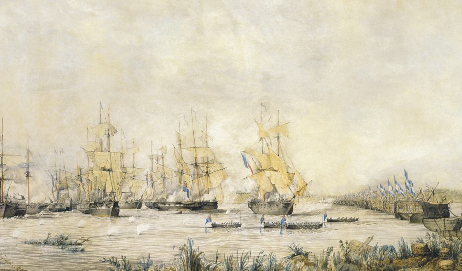 BATALLA DE PUNTA QUEBRACHO -HOY PUERTO GENERAL SAN MARTIN- 4 DE JUNIO DE 1846. VICTORIA DE LA CONFEDERACION ARGENTINA AL MANDO DEL GENERAL LUCIO NORBERTO MANSILLA SOBRE LAS ARMADAS DE INGLATERRA Y FRANCIA.