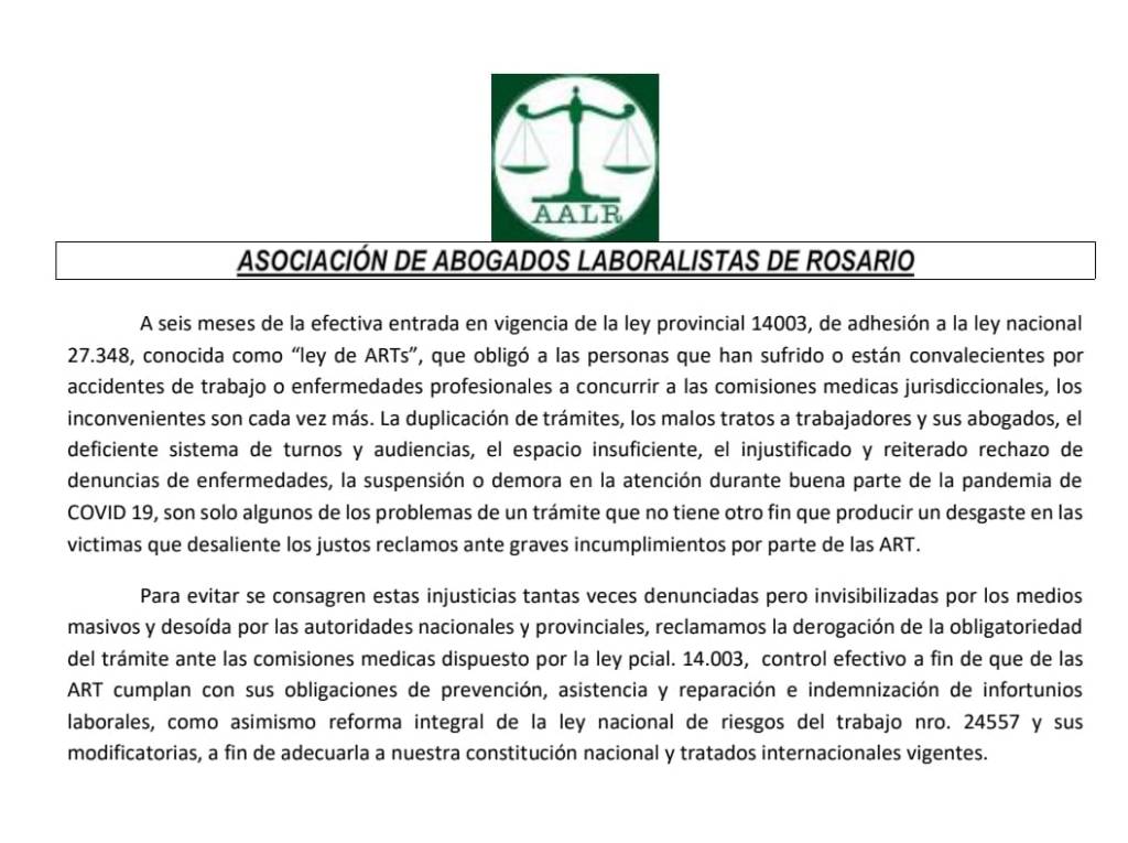 LA ASOCIACION DE ABOGADOS LABORALISTAS DE ROSARIO SIEMPRE ACOMPAÑANDOLXS