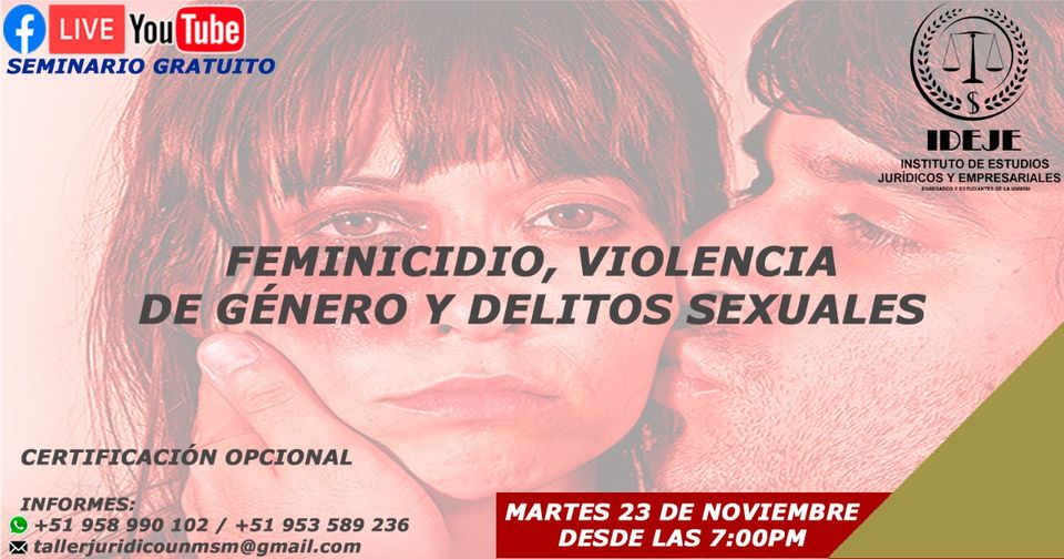 SEMINARIO GRATUITO SOBRE FEMINICIDIO DEL INSTITUTO DE ESTUDIOS JURIDICOS Y EMPRESARIALES