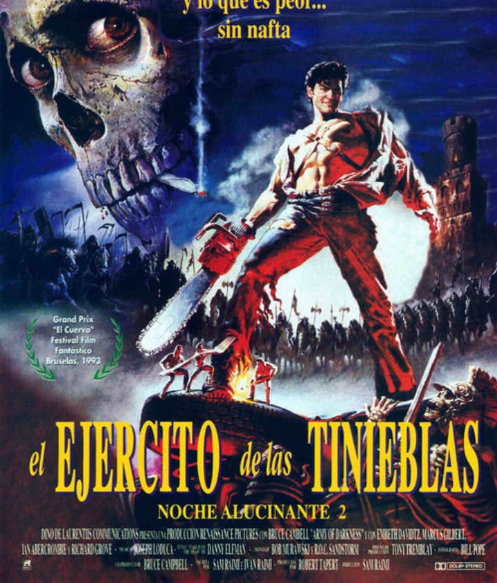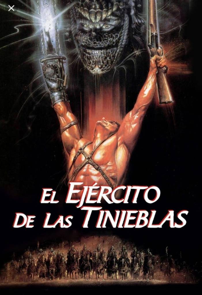 El ejército de las tinieblas es la tercera. Es la mejor de todas, un clásico de culto. Es tan pero tan buena que Bruce Campbell se convierte gracias a esta tercera película en un actor bizarro y de culto con una impronta copiada pero jamás igualada en cine de terror/fantástico. En este filme Ash está con su auto sedan modelo 1973 en el año 1300 (ahí termina, transportado por el portal, la película de 1987) El filme es producido a fines de 1989 y se rodó en 1991 en distintos lugares de California. El filme se estrena recién en 1993. El filme sufrió miles de retrasos, inconvenientes de dinero y muchos obstáculos que casi deja por la mitad la filmación. No tuvo buena crítica en su momento y fue un fracaso comercial. Recién con los años se convierte en filme aclamado y de culto.Es la mejor de las tres, lejos. Ash está en Inglaterra en el año 1300 y deberá buscar el Necronomicón para así poder volver a su época. Al encontrarlo despierta al Ejército de las Tinieblas, y su parte malvada se hace líder de ese Ejército. Pero su parte buena guia a los humanos a luchar contra ese Ejército del mal. Al final es dormido por un líquido mágico y adentro de su auto debe esperar así dormido viajar a su tiempo. Pero ocurre algo, y al despertar está solo en un mundo destruido del futuro y dice: «he dormido mucho». El mejor final para un filme único.