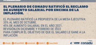 I. NEGOCIACIÓN SALARIAL El Plenario de Secretarixs Generales resolvió como orientación general “ganarle a la inflación”. En términos concretos, se planteó como objetivo que el incremento salarial llegue al 35% en octubre y 45% al final de la paritaria el 28/02/2022. Asimismo, se propuso un esquema de cláusulas de revisión en diciembre y febrero del año próximo. La reunión de la Mesa de Negociación Salarial sería el 12 de agosto.