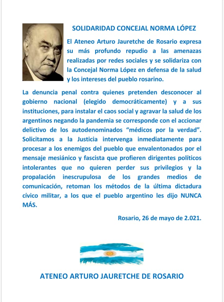 PRIMERAS ADHESIONES RECIBIDAS: (se reciben también hasta el 23-05-21, a través del correo electrónico: proclama25demayo@gmail.com)