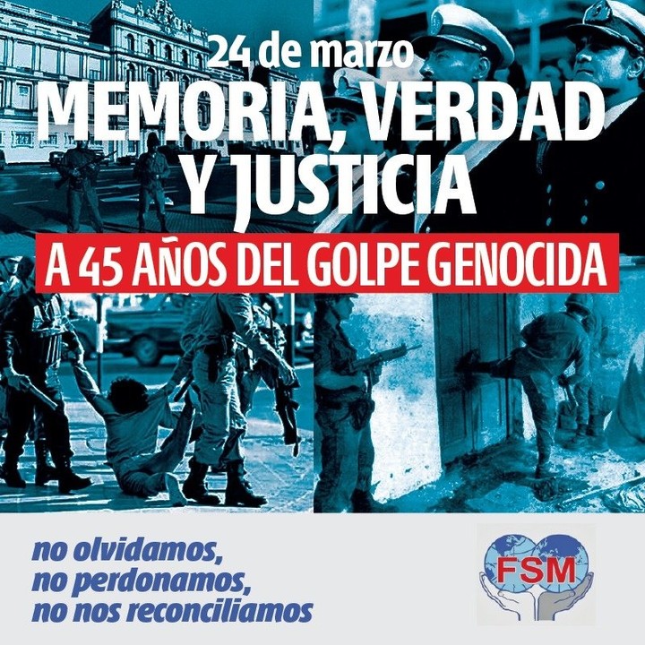 Camino a un nuevo aniversario del golpe cívico-militar-eclesiastico y genocida de 1976, redoblamos junto al pueblo Argentino nuestro compromiso en la lucha por Memoria, Verdad y Justicia.