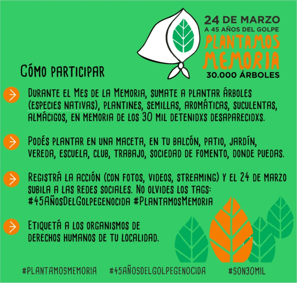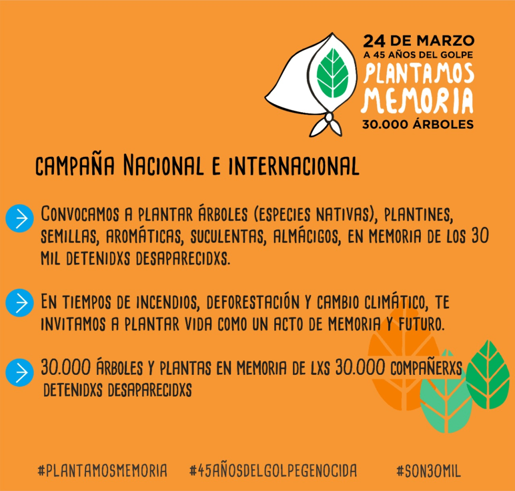 Respetando las necesarias restricciones que impone la pandemia, desde el lunes estaremos llevando adelante actividades políticas y culturales que son nuestro aporte a la semana de la memoria. Lxs convocamos a participar de cada de una de ellas, así como del acto que en reemplazo de la tradicional movilización se realizará el miércoles a las 17hs. en el Parque a la Bandera.
