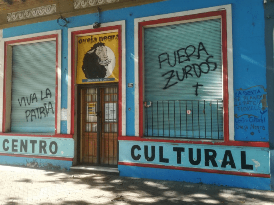 Nuestra total solidaridad con lxs compañxrxs de la Corriente Peronista Descamisados y del Centro Cultural Oveja Negra ante la pintadas sufridas en el local de éste último, en el barrio «República de la Sexta» de la ciudad de Rosario.