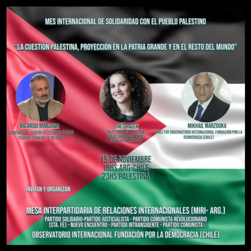Jueves 19 de noviembre 18 hs. ( Chile y Argentina ) * 23 hs.(Palestina)