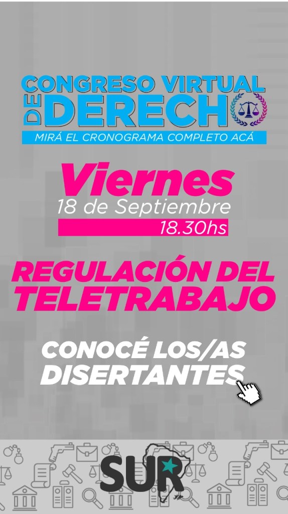 SE REALIZARA EL VIERNES 18/09 UN CONGRESO VIRTUAL DE DERECHO SOBRE LA NUEVA LEY DE TELETRABAJO