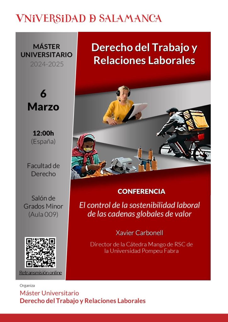 COMPARTIMOS CON NUESTROS LECTORES LA EXPOSICION DE XAVIER CARBONELL, EN LA ACTIVIDAD DESARROLLADA EN LA MAÑANA DE HOY (8:00 HS. ARGENTINA), POR EL MASTER UNIVERSITARIO DERECHO DEL TRABAJO Y RELACIONES LABORALES DE LA UNIVERSIDAD DE SALAMANCA: