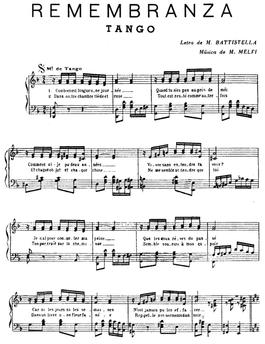 El sábado siguiente, por la tarde, cuando fui al club, estos jóvenes estaban ya practicando como un conjunto. Recuerdo que uno de los tangos era Remembranza, que data de 1934 y es, a mi juicio, uno de los más bellos, sobre todo por su música.