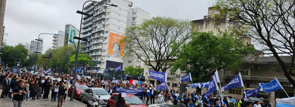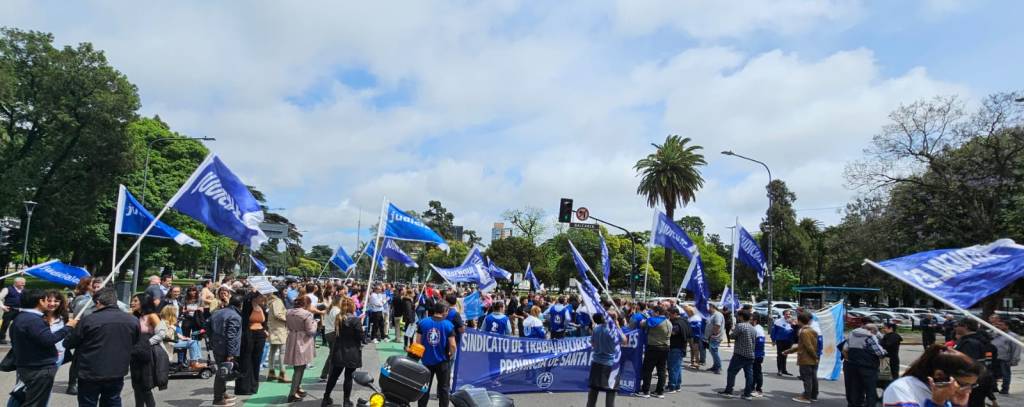 TRABAJADORES JUDICIALES DE LA PROVINCIA DE SANTA FE MANIFESTANDOSE EN AV. CARLOS PELLEGRINI Y BALCARCEDURANTE LA JORNADA DE PARO Y MOVILIZACION POR LOS RECLAMOS QUE NO ENCUENTRAN RESPUESTA POR PARTE DEL GOBERNADOR MAXIMILIANO PULLARO. -FOTOGRAFIA: ALEJANDRO RUIZ-