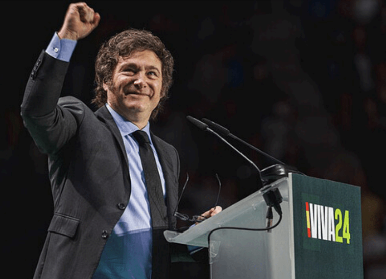 JAVIER GERARDO MILEI EN VOX, ESPAÑA, EN MAYO DE 2024. EN SU CAMPAÑA, EMPLEO UN DISCURSO ANTIPOLITICO, QUE NATURALIZA LA VIOLENCIA Y JUSTIFICA LA DESTRUCCION DEL ESTADO ARGENTINO COMO LO CONOCEMOS.