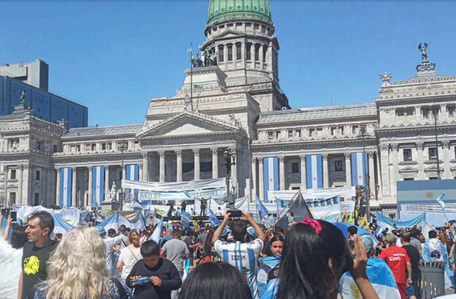 . SIMPATIZANTES DE MILEI DURANTE SU TOMA DE POSESION EL 10 DE DICIEMBRE DE 2023, BUENOS AIRES, ARGENTINA. SE HA ELEGIDO A UN CANDIDATO QUE SOMETE A LA SOCIEDAD A UN CAMBIO RADICAL DE LA ESTRUCTURA SOCIAL, ECONOMICA Y CULTURAL DEL PAIS.