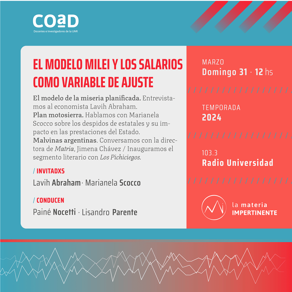 Sobra mes a fin de sueldo. Entrevistamos a Lavih Abraham, Licenciado en Economía, docente universitario e integrante del Mirador de la Actualidad del Trabajo y la Economía (MATE). En este diálogo comparte su mirada sobre la política de ingresos del gobierno nacional y la pérdida del poder adquisitivo de los salarios. Analizamos en particular la situación de lxs docentes de las Universidades Nacionales utilizando como parámetro el Salario Mínimo, Vital y Móvil de la docencia universitaria calculado por MATE.
