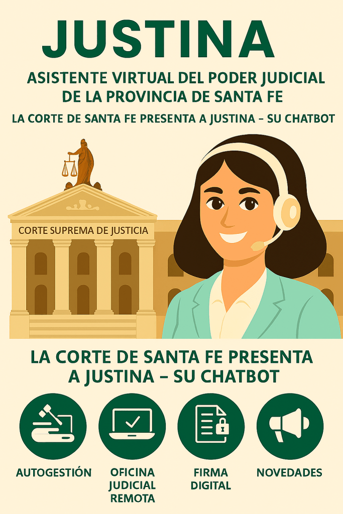 La Corte Suprema de Justicia de la Provincia de Santa Fe hace saber que, en el marco de las políticas de modernización y acceso a la información, se ha dispuesto la puesta en funcionamiento de la nueva “Plataforma de Atención Digital Asistida – JUSTINA”.