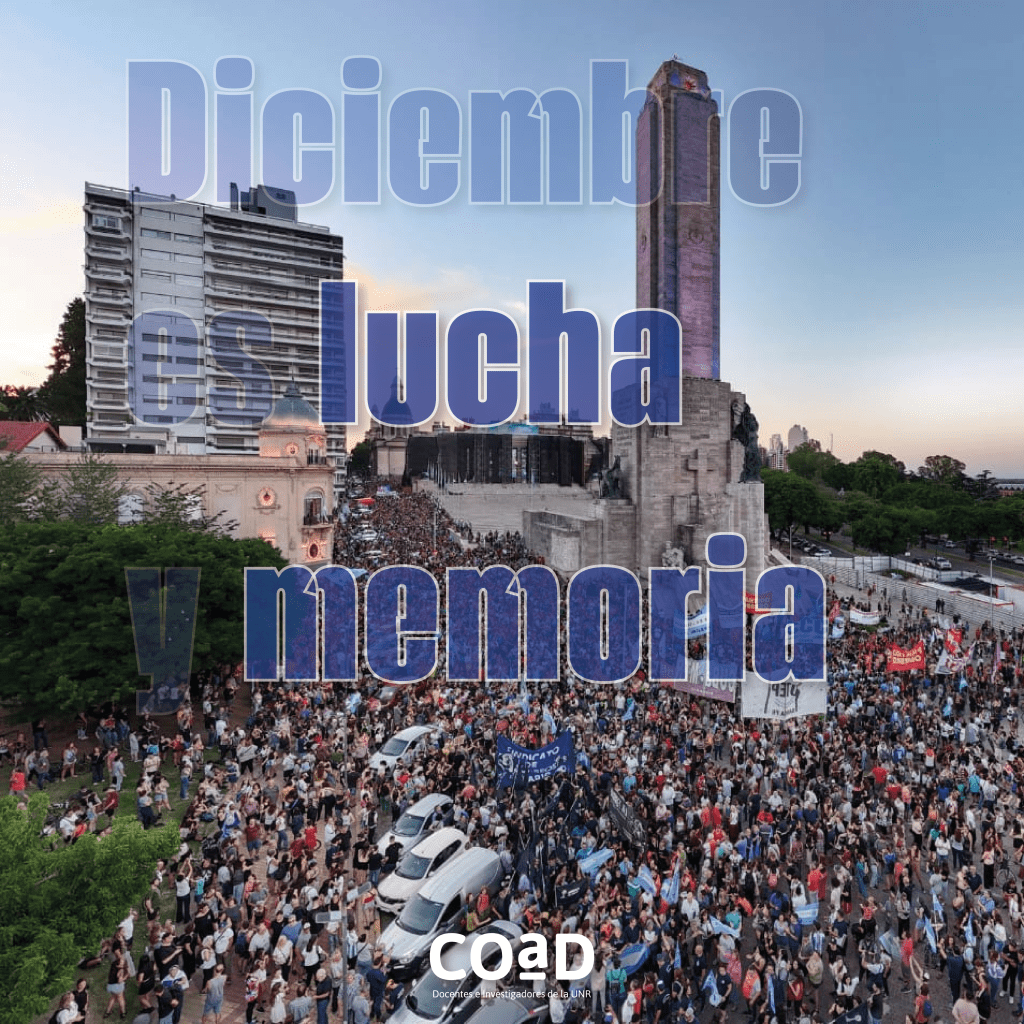 Diciembre es lucha y memoria. Lxs docentes universitarixs comenzamos la semana con una masiva asamblea, para debatir y organizarnos por la defensa de nuestros salarios y jubilaciones. El martes, acompañamos el acto de familiares de víctimas de la represión del 19 y 20 de diciembre del 2001 y del homenaje a la compañera Celeste Lepratti. El miércoles estuvimos en las calles, no solo rememorando la gesta popular del 2001, sino también repudiando las medidas profundamente regresivas del actual Gobierno. Toda esa organización, esas emociones, esa bronca, esas convicciones, confluyeron el día de ayer en la masiva concentración en el Monumento.